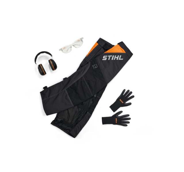 Mit dem STIHL FUNCTION Kit MS erhalten Sie eine grundlegende Sicherheitsausrüstung für sicheres Arbeiten mit der Motorsäge rund um Haus und Garten, zum Beispiel beim Brennholzschneiden. Das Set enthält einen vorderen Beinschutz mit Schnittschutz zur Vermeidung von Verletzungen mit der Motorsäge, Gehörschutz, Schutzhandschuhe und eine Schutzbrille. Wenn Sie dieses Kit kaufen, haben Sie die gesamte Ausrüstung, die Sie brauchen, zu einem günstigen Preis.